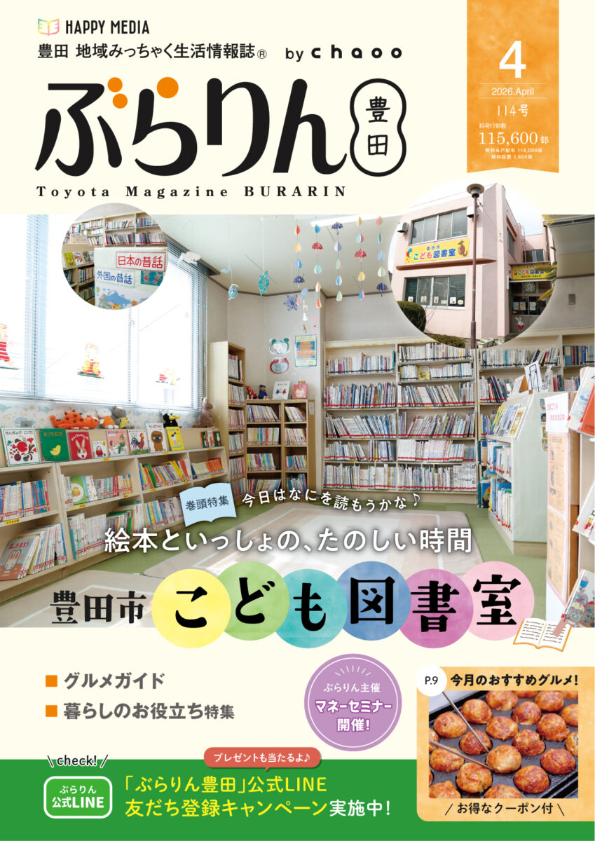 ☆クーポンを印刷して使ってね! ぶらりん最新号 巻頭特集 絵本といっしょの、たのしい時間 豊田市こども図書室 Kiss Kiss Kids Special☆ 今スグ食べたい! おすすめグルメ グルメガイド 暮らしのお役立ち特集 美と健康 お仕事ナビ 今月のお出掛け情報 読者のお部屋 今月のプレゼント ぶらりんを見る バックナンバー